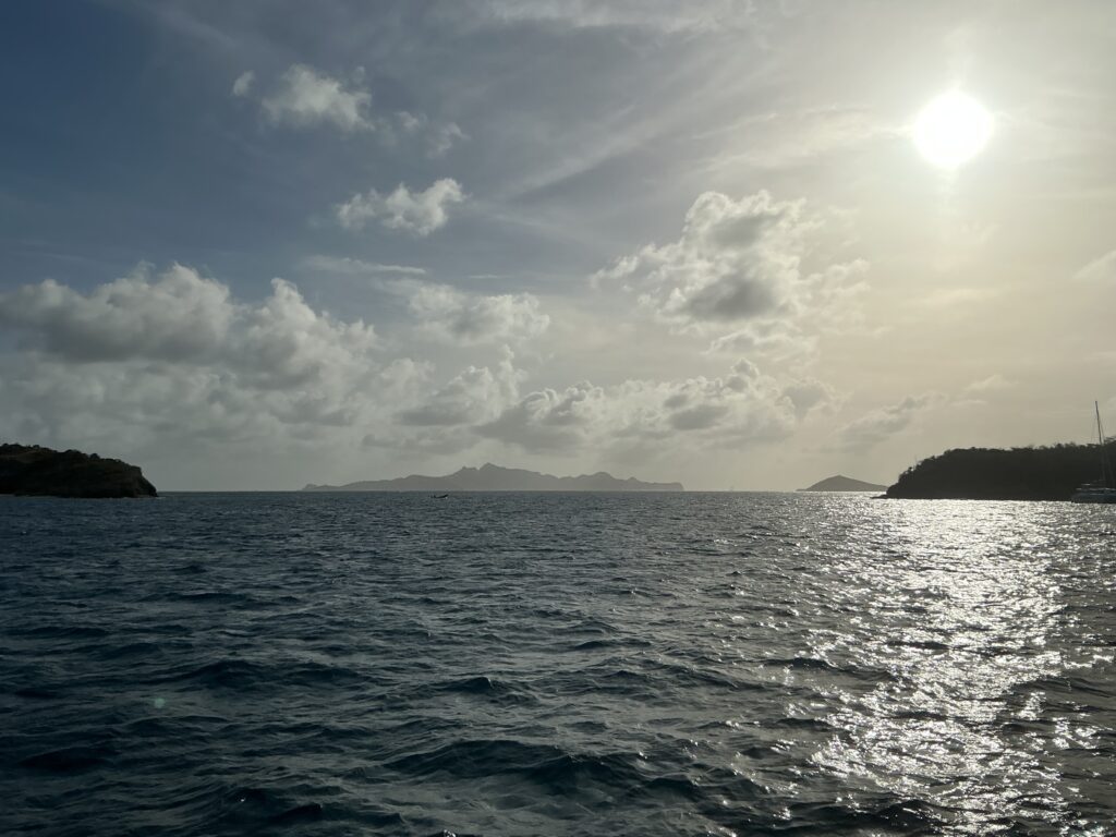 Tags darauf ging es schon früh los, so dass wir die knapp 60sm nach Bequia bei Tageslicht segeln konnten. Wir segelten im Luv von Saint Vincent durch, hatten da aber um die 2kn Gegenstrom. Trotzdem erreichten wir noch bei komfortablen Tageslicht Port Elizabeth und ankerten in der Admirality Bay. Den Sundowner hatten wir uns redlich verdient.