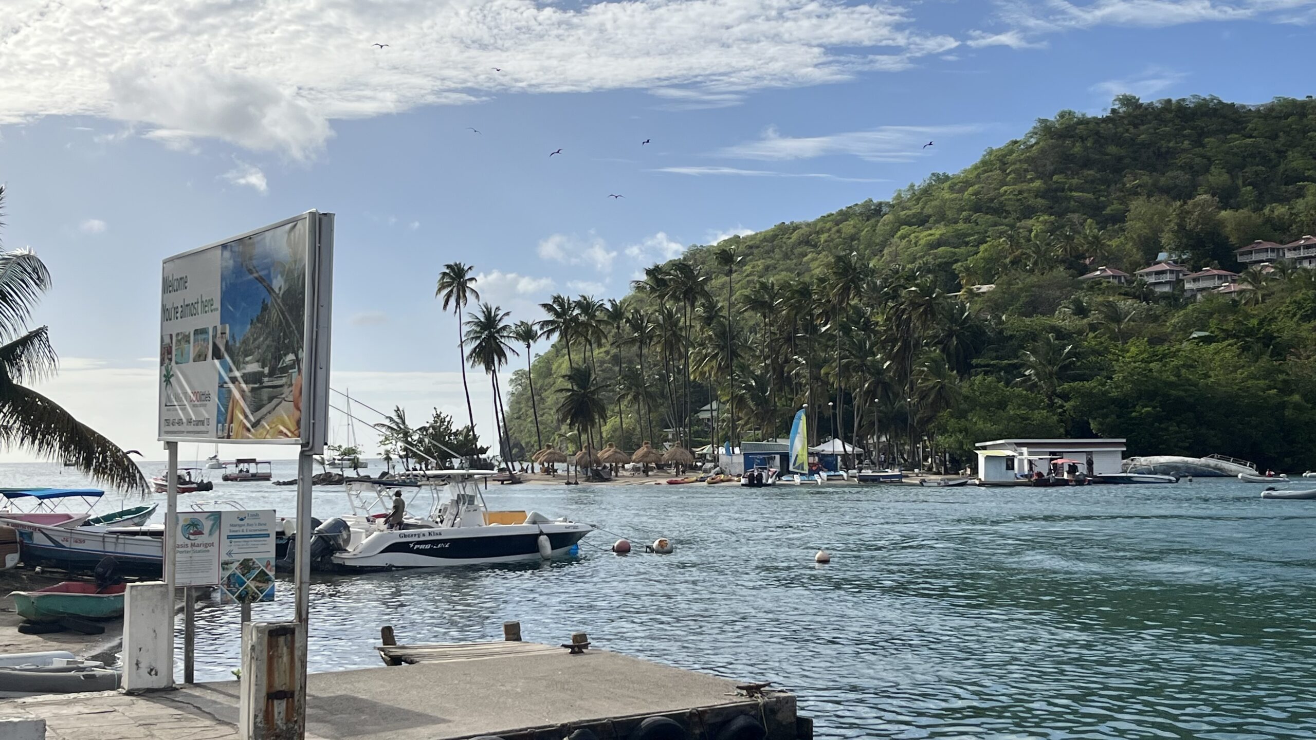 Von der Rodney Bay ging es mit flottem Wind weiter zur Marigot Bay, welche Rico sehr gut gefiel. Geankert wurde in der Einfahrt zur Lagune und wir besuchten mit dem Dinghy RAFINE das Hurricane Hole und genossen einen exotischen Drink.