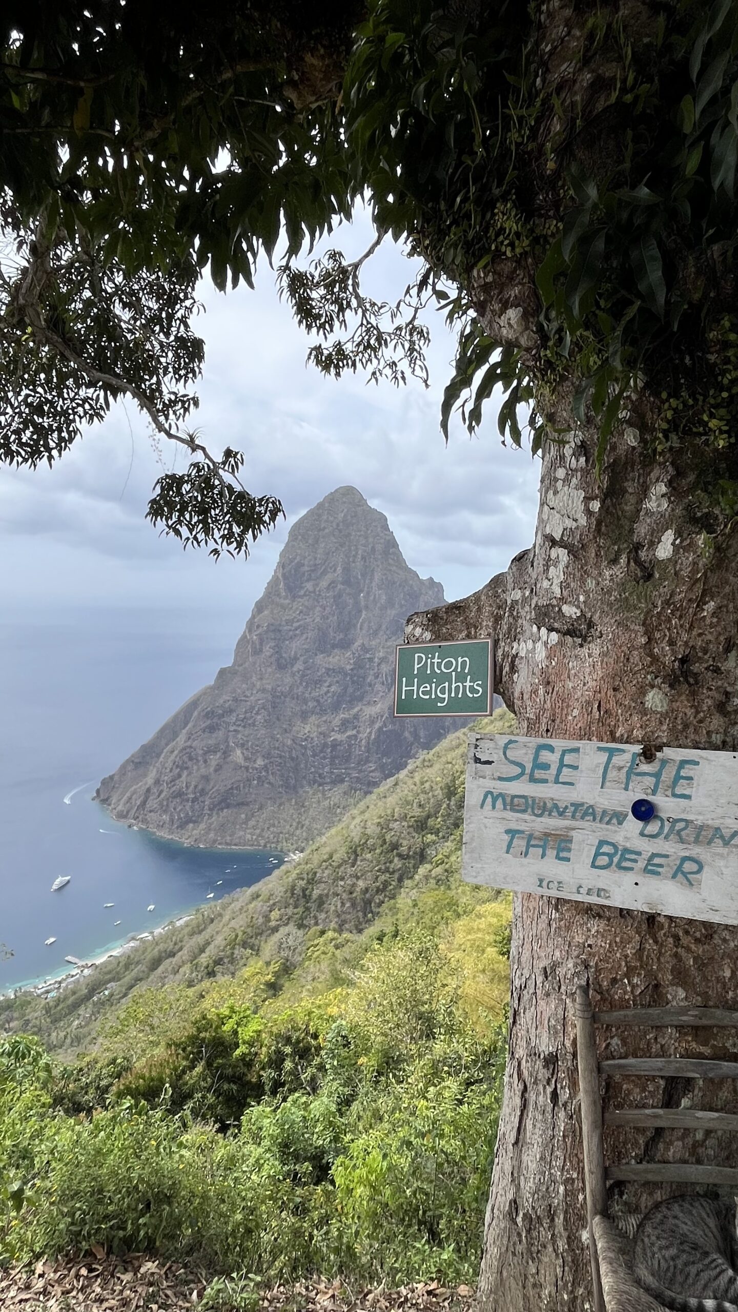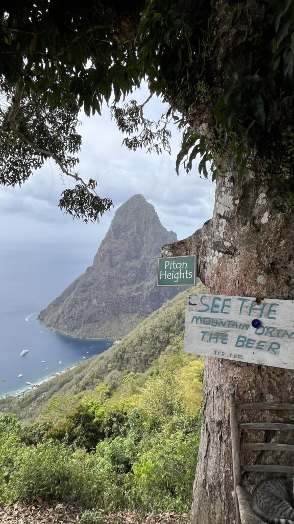 Weil es so schön war, blieben wir noch einen Tag in Marigot Bay und gaben uns dem Müssiggang hin. Tags darauf ging es mit einem kurzen Schlag nach Soufriere, wo ich bei Clive eine Boje und für den Nachmittag eine Tour zum TET Paul Trail bei den Pitons reserviert hatte. Dieser Trail war einmal mehr wunderschön und es gab viel zu sehen. Dummerweise fehlte uns eine Machete, um die wilden Früchte zu ernten. Bei den Piton Heights gab es leider kein Piton Bier, da der Rasta-Verkäufer schon Feierabend hatte. „See the mountain, don’t drink the beer“. Island time halt.