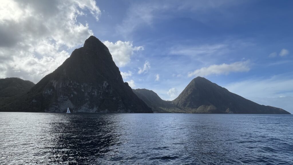 Tags darauf klarierten wir aus und machten uns an die Überfahrt nach Saint Lucia. Es war schön, nach 11 Tagen in der Marina wieder zu Segeln und frische Seeluft zu schnuppern. Schnell kam Saint Lucia in Sicht und wir gingen in der Rodney Bay vor Anker.