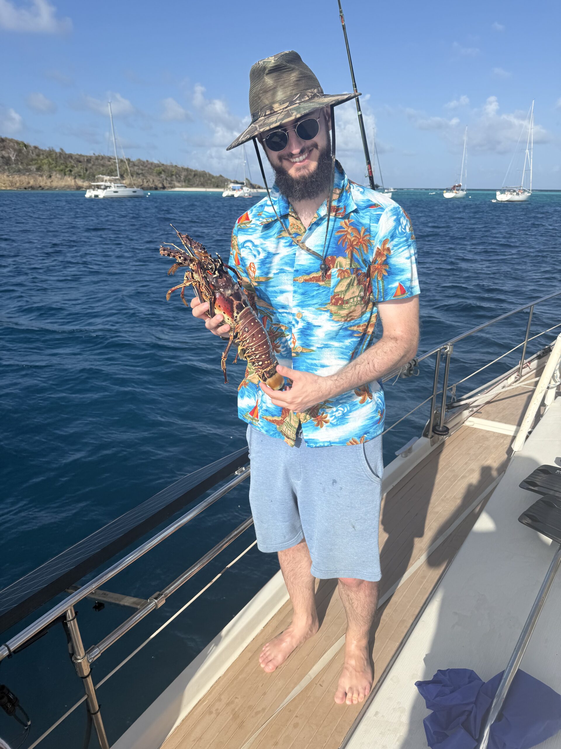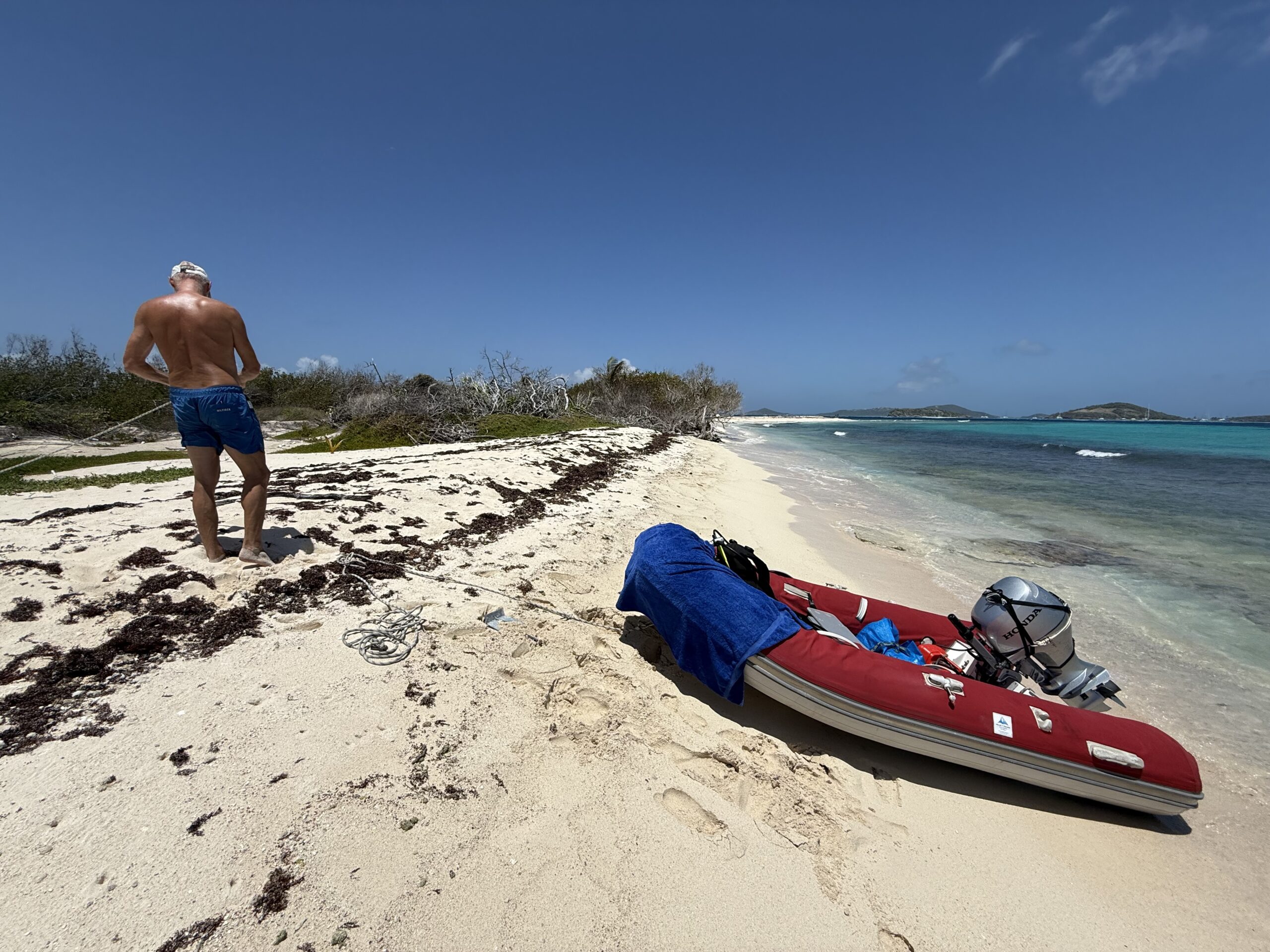 Mit dem Dinghy RAFINE besuchten wir die kleine Insel Petit Tabac, welche ausserhalb des Horseshoe Reefs liegt. Also suchten und fanden wir den Dinghy Pass durch das Riff und setzen RAFINE auf den Strand. Im Film „Pirates of the Caribbean“ wurde auf Petit Tabac die Szene gedreht, in welcher Captain Jack Sparrow und Elizabeth Swann auf einer einsamen Insel (Rumrunner’s Isle) ausgesetzt wurden. Dort fanden sie ein verstecktes Rum Lager, welchen Jack und Elizabeth in der Nacht am Feuer tranken. Später zündete Elizabeth den Rum an (wie schade), um mit einem grossen Rauchsignal ein Schiff auf sich aufmerksam zu machen. Nun, wir haben weder Rum noch Lagerfeuer gefunden, dafür uneingeschränkt schöne Natur. Später machte ich am Horseshoe Reef noch einen kleinen Tauchgang und Rico entdeckte die Unterwasser Welt beim Schnorcheln. Wie meistens in den Tobago Cays, hatte es auch diesmal eine starke Strömung, welche beide Unterfangen nicht so einfach machte. Bei Big Mama am Lobster BBQ Strand auf Petit Rameau erstanden wir später eine Languste, welche wir uns als Dinner zu Gemüte führten.